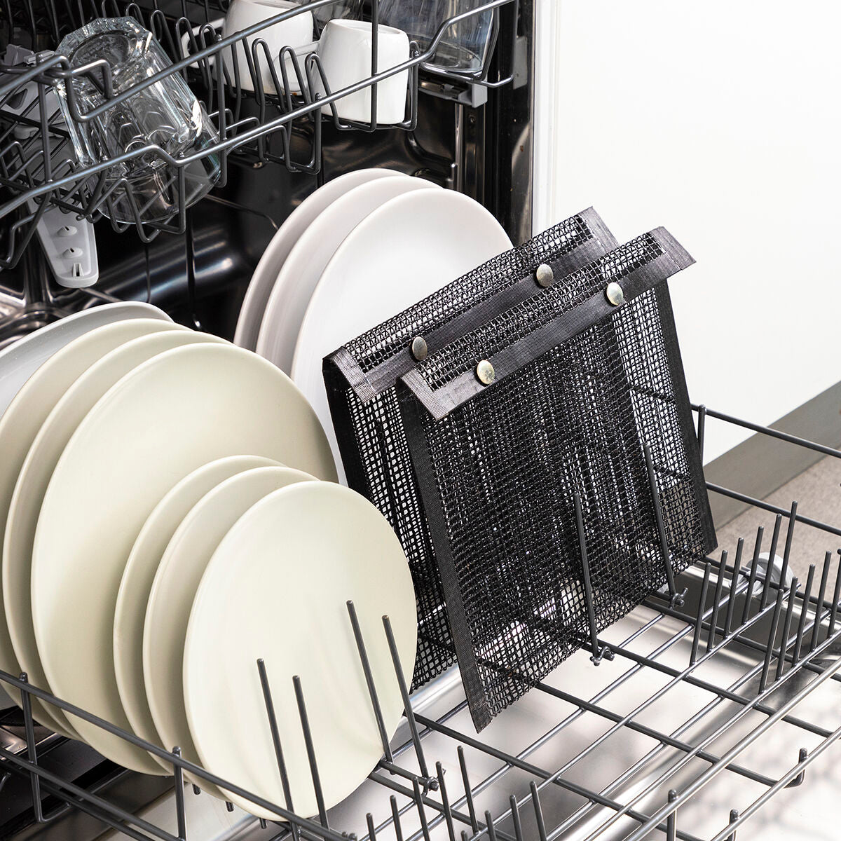 Set mit 2 Grill-Netzbeuteln, ideal zum Grillen von Gemüse und anderen kleinen Lebensmitteln, ohne Anhaften, Herunterfallen und Anbrennen. Sehr praktisch und einfach in der Handhabung. Das Essen einfach in die Beutel füllen und auf den Grill legen (niemals direkt über den Flammen). Das Essen gart besser und schmeckt besser, da der Rauch durch die Maschen dringt. Drehen Sie die Beutel einfach um, um die andere Seite zu grillen. Da sich die Lebensmittel in den Beuteln befinden, können sie beim Grillen nicht auseinanderlaufen oder herausfallen, und wenn sie einmal fertig gegrillt sind, lassen sie sich dank des Antihaftmaterials leicht entfernen. Darüber hinaus lassen sich die Beutel leicht in der Spülmaschine reinigen. Eine absolut hygienische und effiziente Methode, Lebensmittel auf dem Grill zuzubereiten.