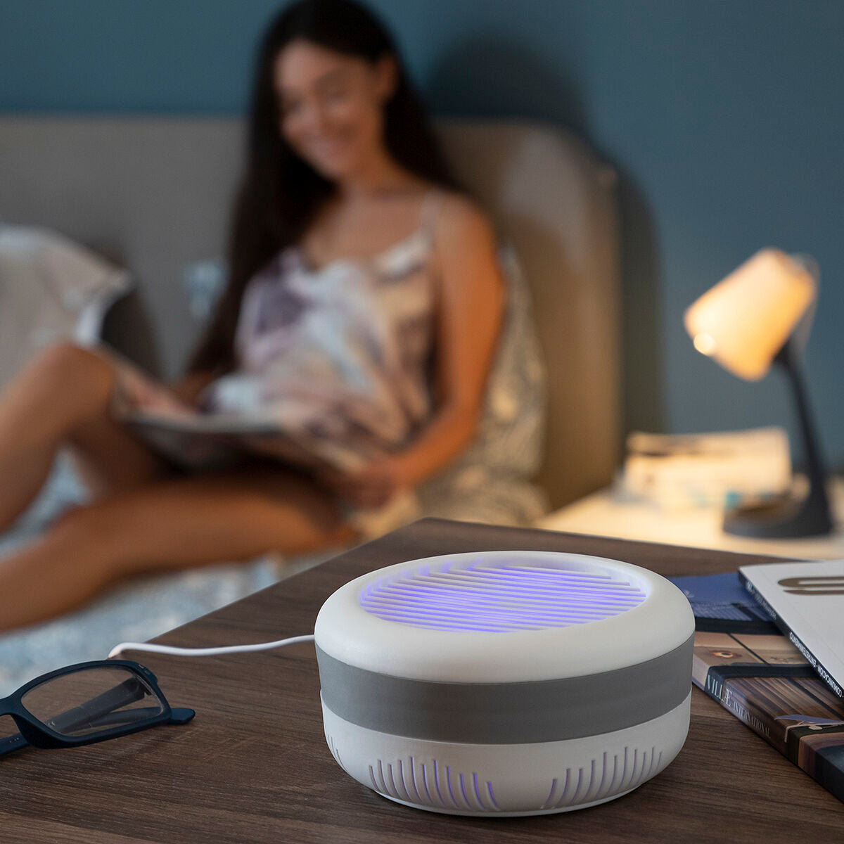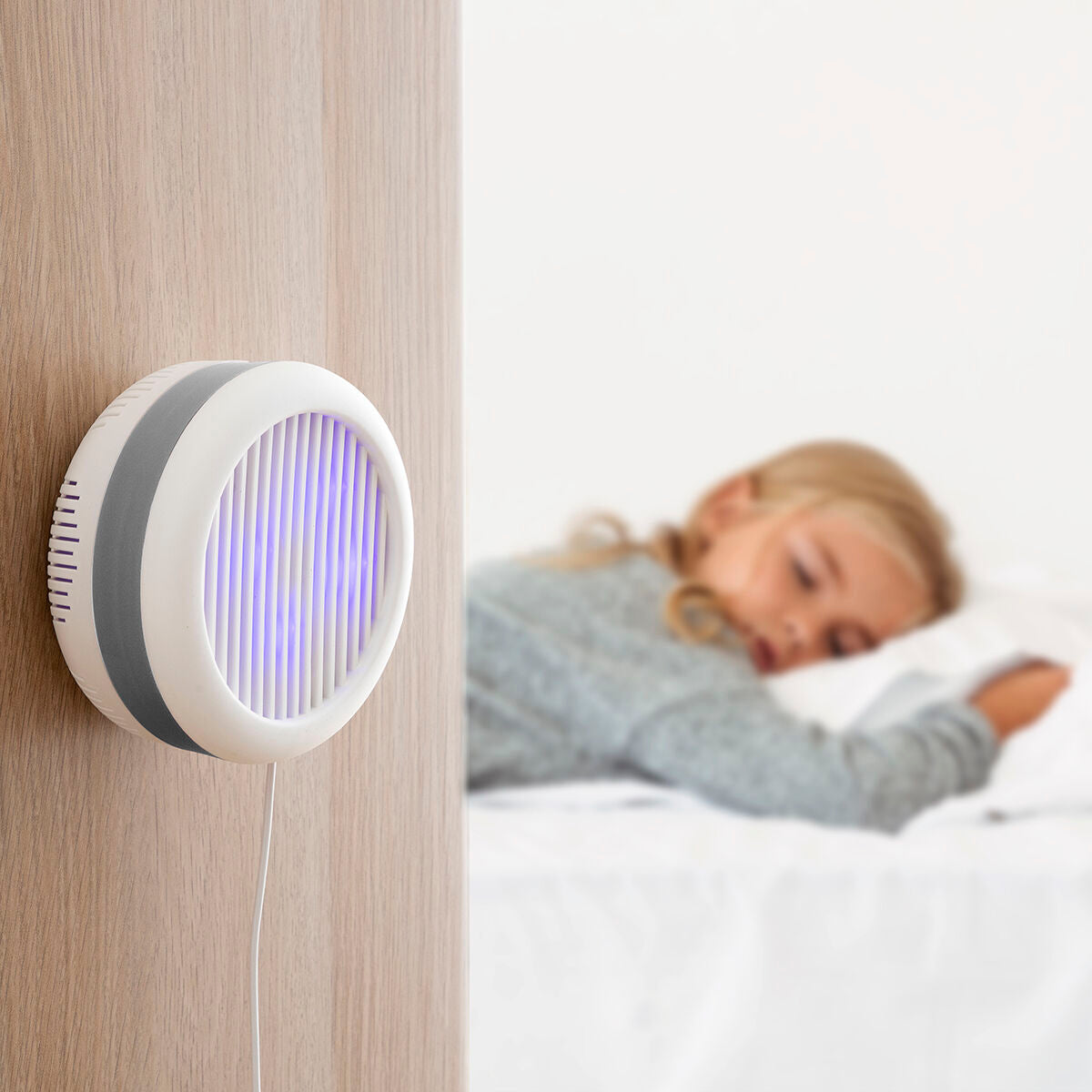 Eine Antimückenlampe mit Saugfunktion, die hocheffektiv ist, um lästige Insekten auf natürliche und umweltfreundliche Weise zu entfernen, ohne unangenehme Gerüche oder chemische bzw. giftige Produkte, die die Umwelt verschmutzen, freizugeben. Die Lampe ist mit 4 UV-LEDs (360-400 nm) zur Anlockung der Mücken und einem internen Ventilator ausgestattet, der die Mücken in den Innentank saugt, wo sie gefangen und getötet werden. Dank des innovativen, kompakten und tragbaren Designs lässt sie sich leicht in verschiedenen Positionen aufstellen und kann problemlos überall hin transportiert werden. Dank der mitgelieferten Klebehalterung kann sie platzsparend an der Wand befestigt werden. Die Lampe ist vor allem für den Innenbereich geeignet, kann aber auch im Außenbereich eingesetzt werden. Sie funktioniert über eine USB-Verbindung, so dass ihr USB-Kabel (im Lieferumfang enthalten) an eine Steckdose (mit einem USB-Adapter, nicht im Lieferumfang enthalten), einen Laptop oder eine Powerbank angeschlossen werden kann und somit überall einsetzbar ist. Für mehr Komfort wickelt sich das Kabel im Unterteil des Geräts auf. Zum Reinigen muss lediglich der Tank geöffnet und mit einer Bürste oder einem feuchten Tuch gesäubert werden.